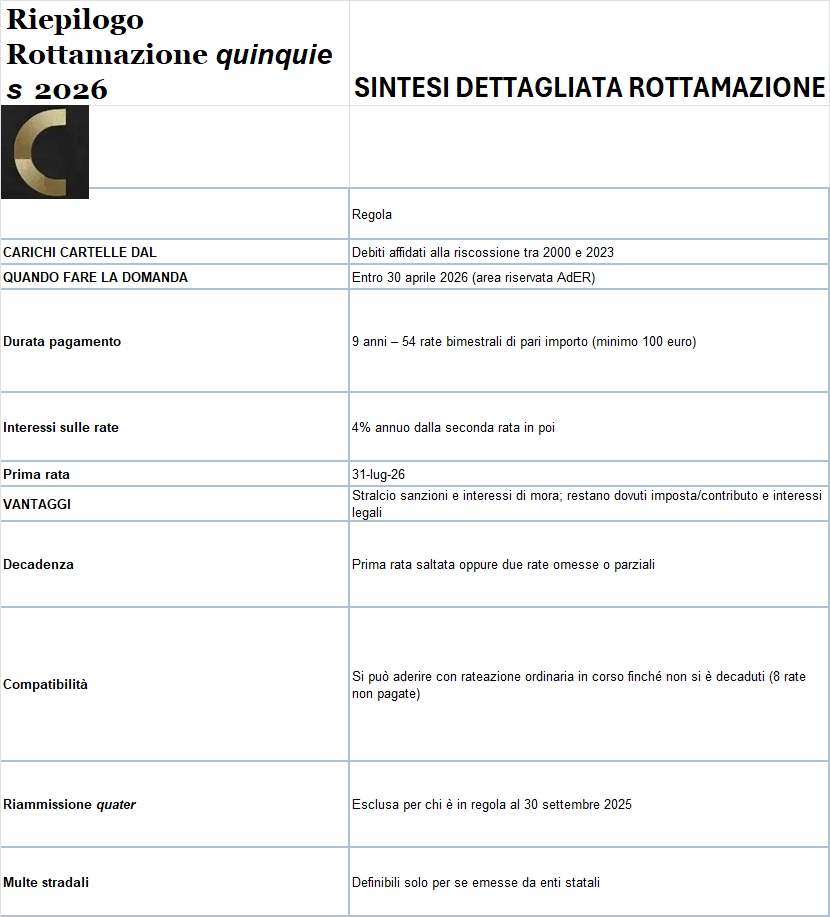 -Compatibilità: chi era in regola con la quater al 30 settembre 2025 non può includere gli stessi carichi nella quinquies ma può utilizzarla per nuove cartelle o per quelle decadute da precedenti definizioni
